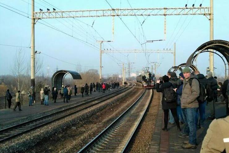 Зокрема, електрички минали станцію «Троєщина-2», не зупиняючись, повідомляє Киев Оперативный.