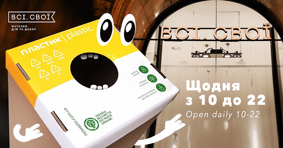 Також громадська організація «Україна без сміття» надала для продажу бокси для сортування пластику на Хрещатику у «Всі. Свої – Дім та декор».