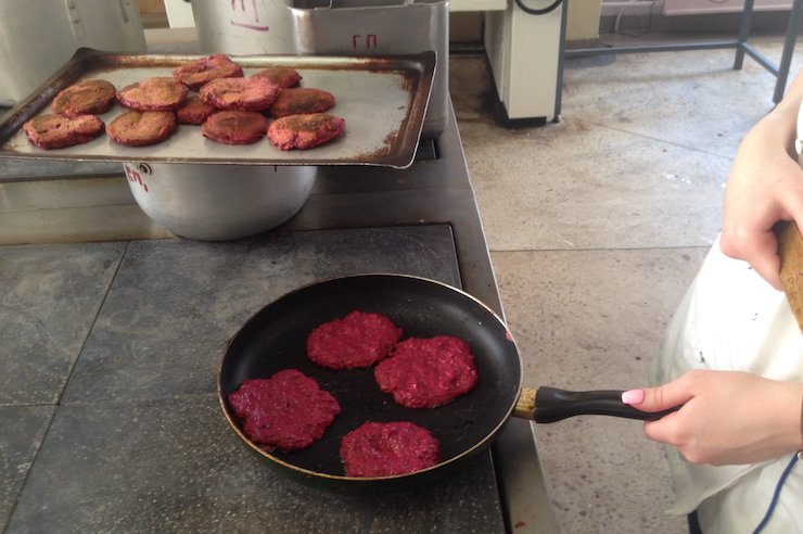 Приготування бурякових панкейків під час тестування рецептів у київських школах. Фото: facebook.com/nsf.cult.food