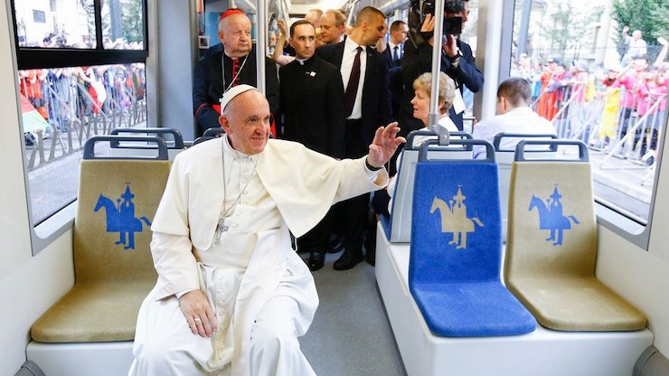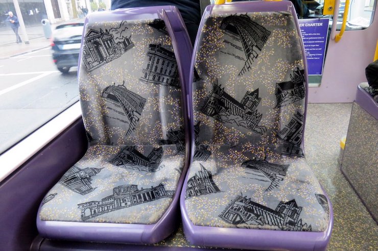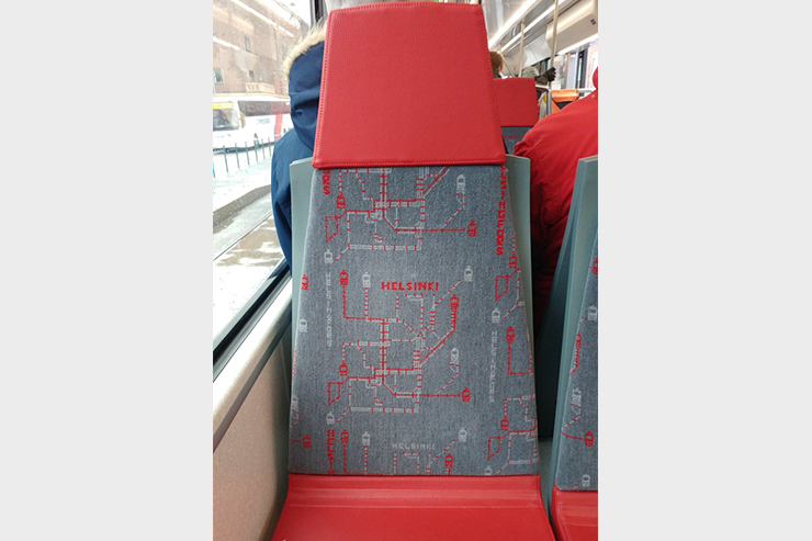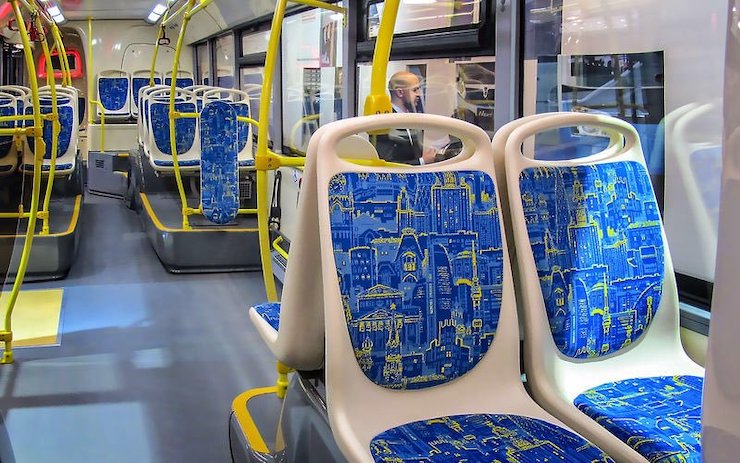 Буває, що місцеві дизайнери намагаються перетворити сидіння на епічне полотно. Так сталося з трамваями у Варшаві. Тут реалістично зображено міські мури на якомусь кривавому тлі.