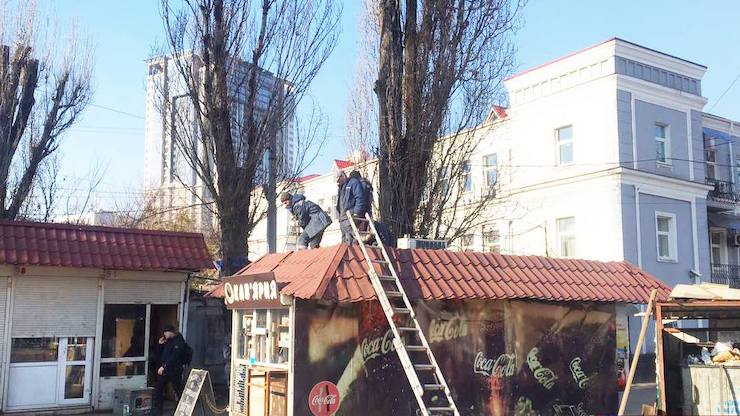 27 лютого на вулиці Довженка, 1в, що на Шулявці, розібрали близько 20 торговельних точок-ролетів. Інспекторська перевірка виявила відсутність оренди земельної ділянки.
