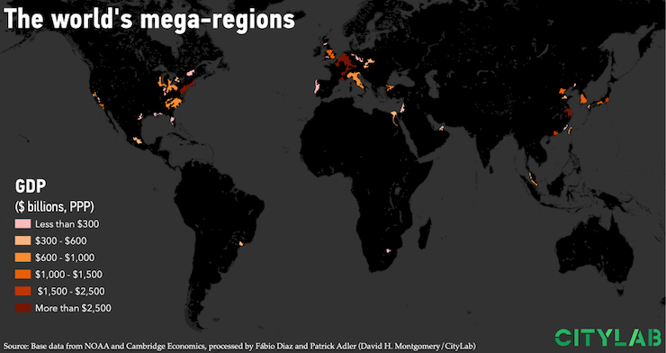 Реальними рушіями світової економіки зараз є не національні держави і навіть не окремі міста, а мегарегіони, вважає американсько-канадський економіст і соціолог Річард Флорида. У виданні CityLab вийшла стаття його авторства з детальною інфографікою.