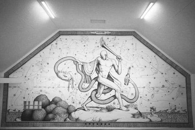 Waone створив на одній зі стін приміщення мурал під назвою «Вічна боротьба». В основу покладено іконічний сюжет про змієборця, що має символізувати внутрішню боротьбу людини над демонами та шлях до досконалості.