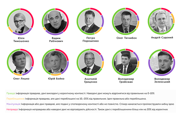 Частки брехні і правди у висловлюваннях кожного з політиків