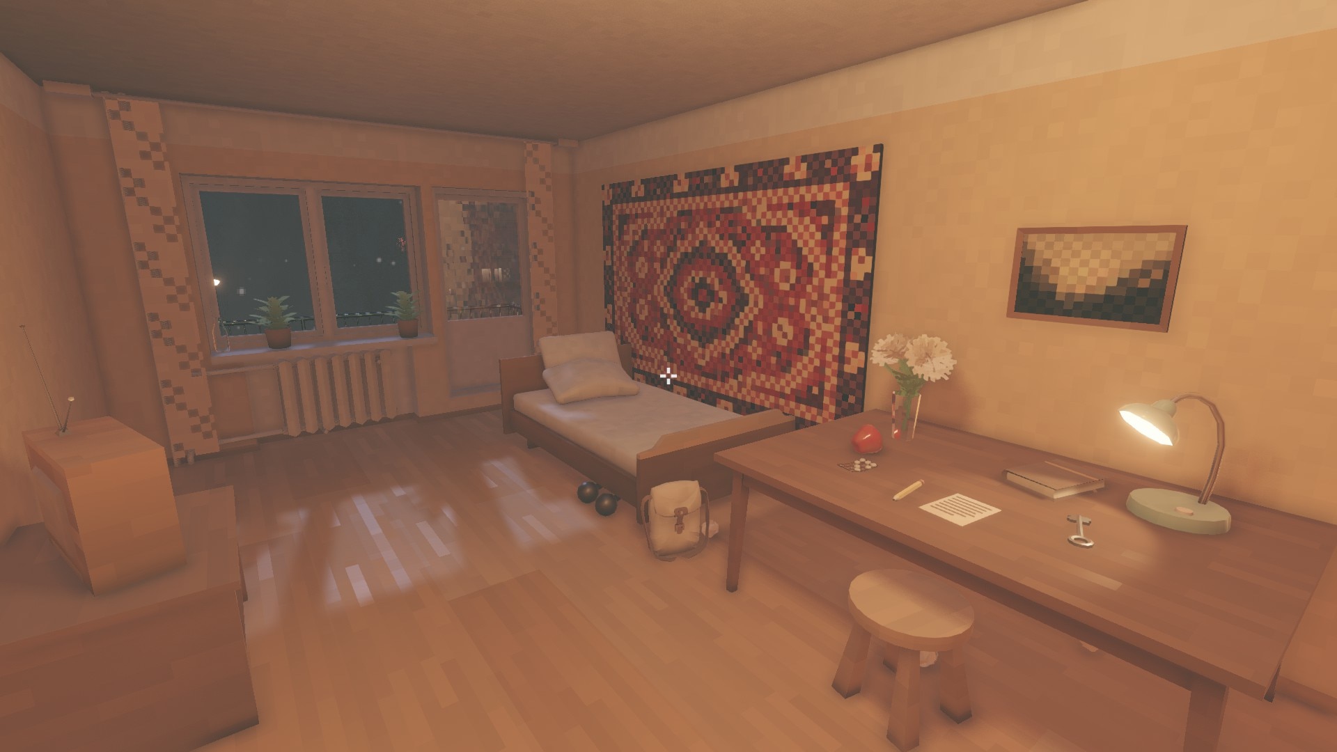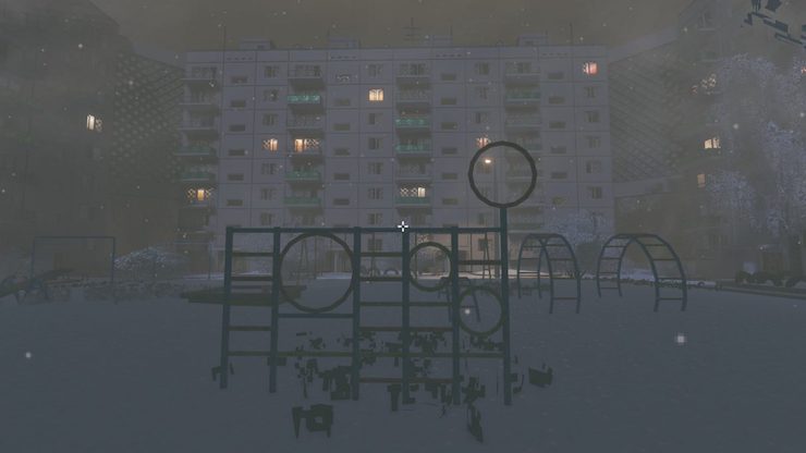 Гра не має сюжету і мети, в ній можна лише тинятись квартирою, під’їздом та вийти на засніжену вулицю. Залишити локацію не можна, існування в ній не має сенсу.