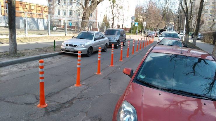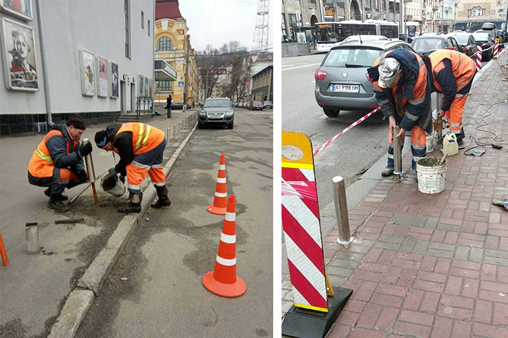 У центрі Києва встановлюють антипаркувальні стовпчики, на Шулявці – делінеатори (фото)