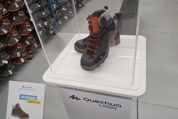 Кілька моделей взуття для туристичних походів виробляється в українських Прилуках. Виробництво Decathlon на Закарпатті й у Сумах постачає кросівки, воротарські рукавички, ключки для хокею, бігові лижі тощо.