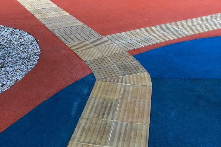 Тактильна плитка на інклюзивному дитячому майданчику в Дніпрі. Фото: Andrew Havand / medium.com/@havand