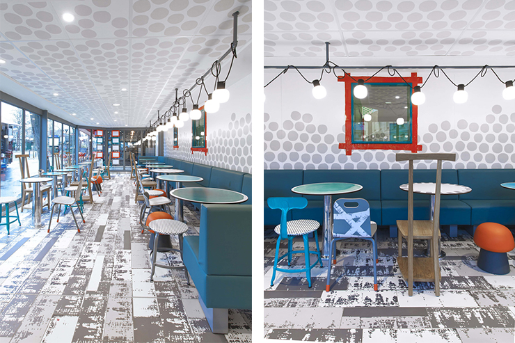 В інтер’єрі МсDonald’s Навоне прагнула «відтворити домашню атмосферу, з різними кімнатами та різнокольоровими меблями для гарного настрою».