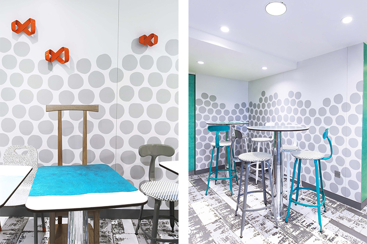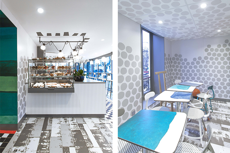 Дизайнерка використала свої улюблені прийоми: нестандартної форми меблі, композиції різнокаліберних стільців та столиків, оптичні ілюзії, такі як дзеркала у «картинних рамках», пише Pragmatika.
