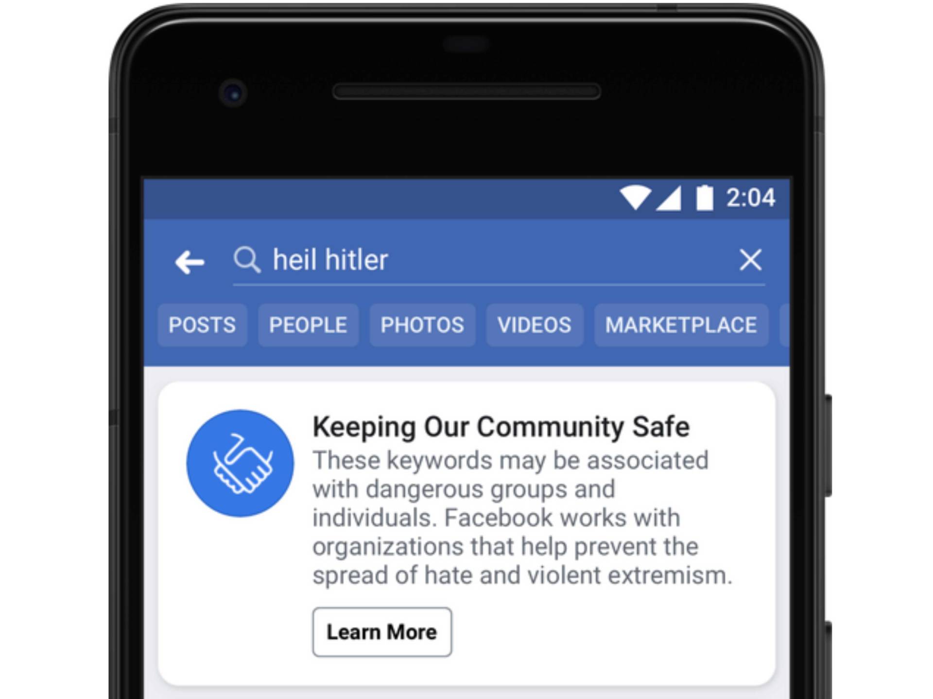 Наступного тижня Facebook впроваджує оновлення: якщо користувач шукатиме інформацію про ідеї «білого націоналізму» та «білого сепаратизму», йому запропонують дізнатися більше про те, до яких наслідків вони призводять. Про це рішення повідомляється у блозі Facebook.