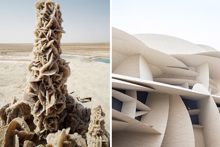 Ліворуч – «троянда пустелі», праворуч – музей. Фото: Wikipedia, Iwan Baan, Danica O. Kus