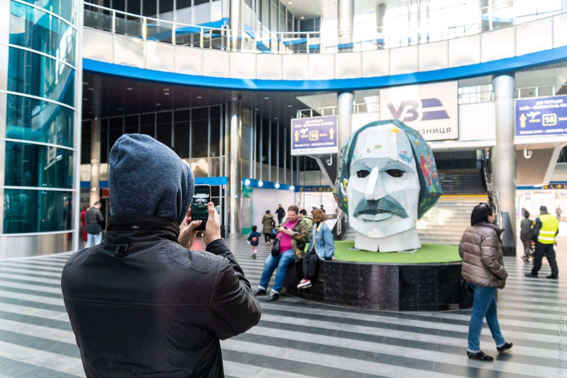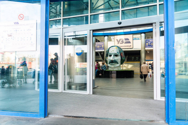 На Південному вокзалі встановили велику голову Гоголя (фото)
