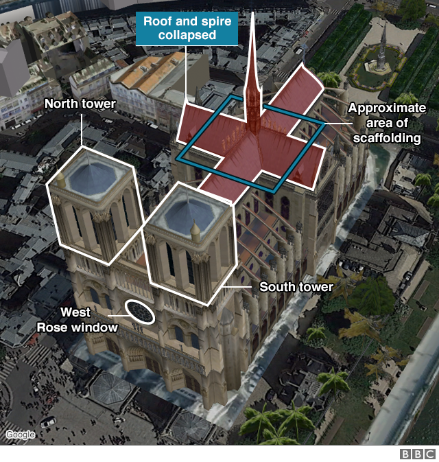 Хоча основна конструкція будівлі виконана з каменю, найвразливішою частиною готичних соборів є дерев’яні перекриття даху. Також будівельні риштовання погіршили ситуацію.