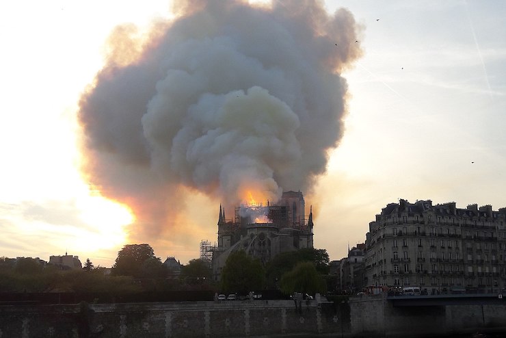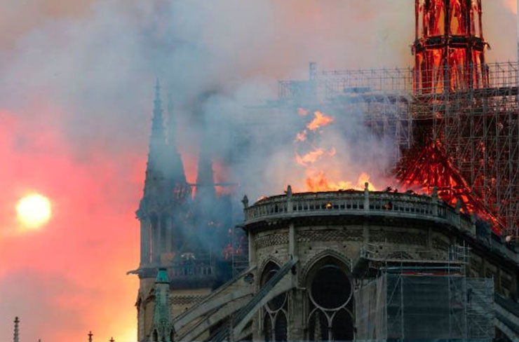 Внаслідок пожежі, яка спалахнула в Соборі Паризької Богоматері близько 18:50 15 квітня, знищено дві третини даху, обрушився шпиль, також вогонь частково знищив склепіння. Про це повідомляє Le Monde.