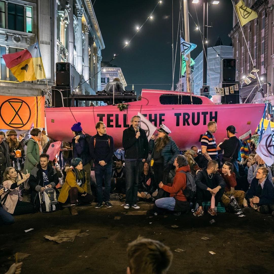 Повідомляється, що до протесту приєдналася англійська акторка Емма Томпсон – вона зверталася до містян з рожевого човна, яку обрали символом протесту. Він стояв на площі біля станції метро Oxford Circus, наразі там частково перекрито рух.