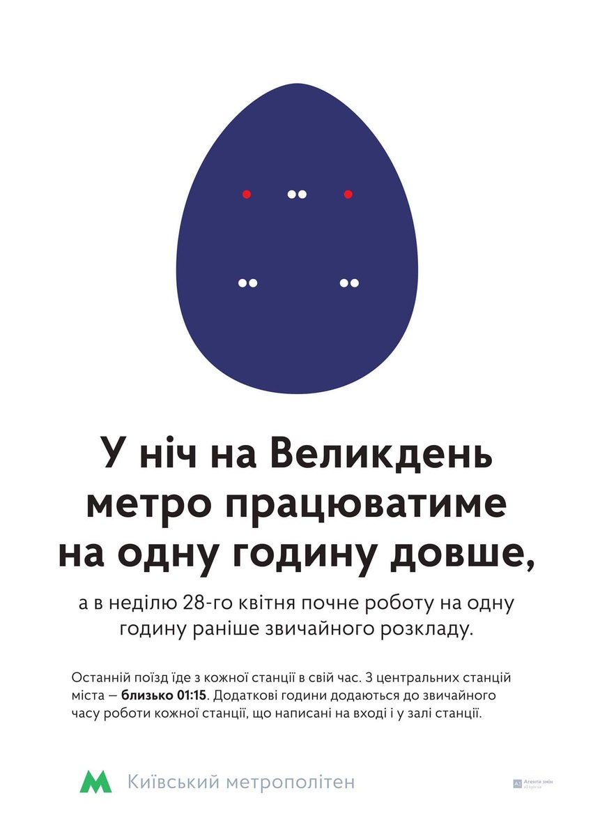 Цієї неділі, 28 квітня, в Україні святкують Великдень. КП «Київський метропоілтен» повідомляє про зміни в графіку роботи під час свята.
