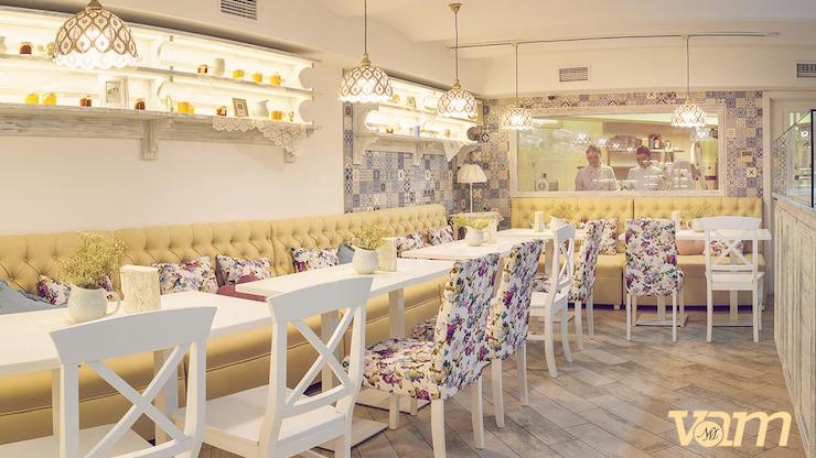 Інтер’єр закладу оформлено у стилі шеббі-шик.