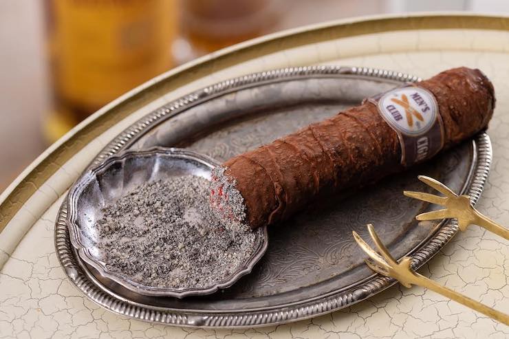 Сигара (98 грн) – це десерт із чорного шоколаду, фундуку, бергамоту й рому. Чізкейк із сиром брі (84 грн) складається з чотирьох сирів, груші, мусу з пармезану і дор блю на крустильяні з волоського горіху.