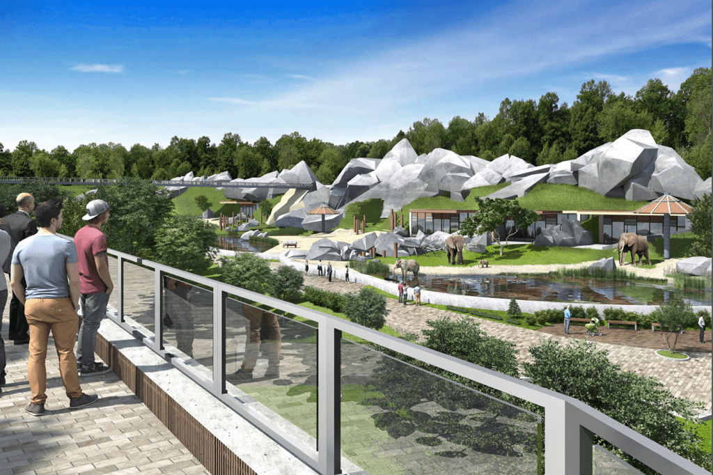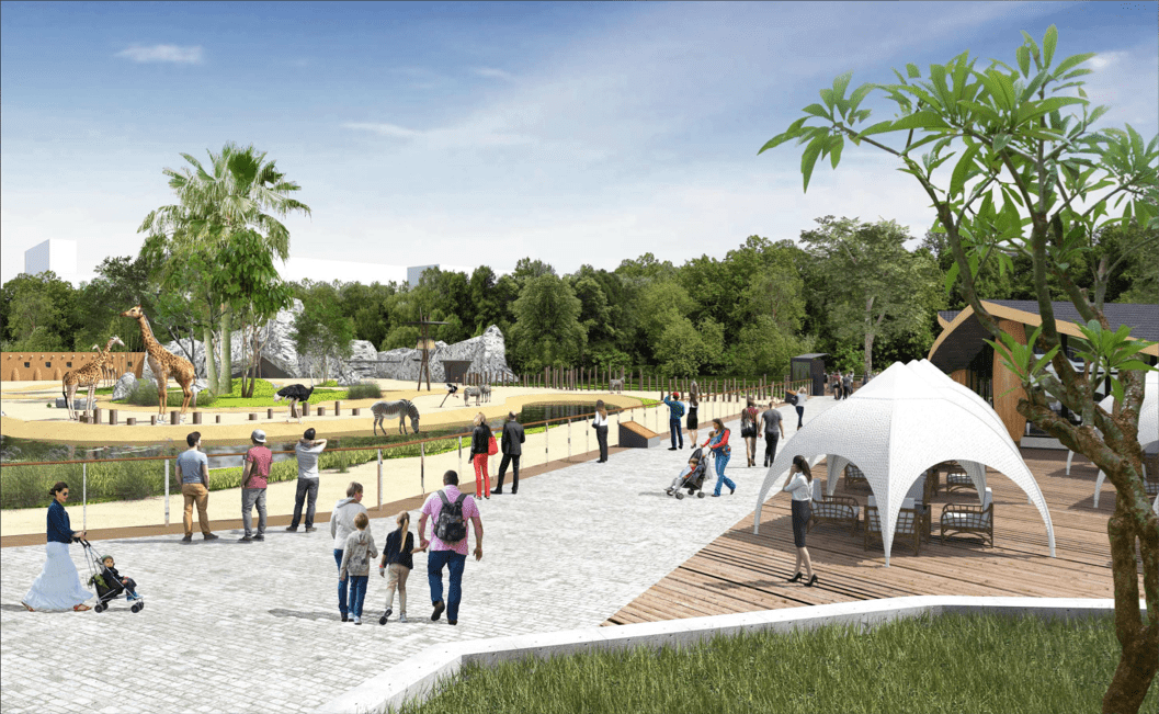 Зоопарк також перезонують: замість зон «ссавців», «копитових», «приматів», «птахів» відбудують зони, зокрема, «Африканська саванна», «Долина Нілу» та «Полісся». На мінус першому поверсі облаштують акварум-тераріум. Облаштують також авіарій. Наразі така зона встановлена в зоопарку, проте вона не придатна для відвідування.