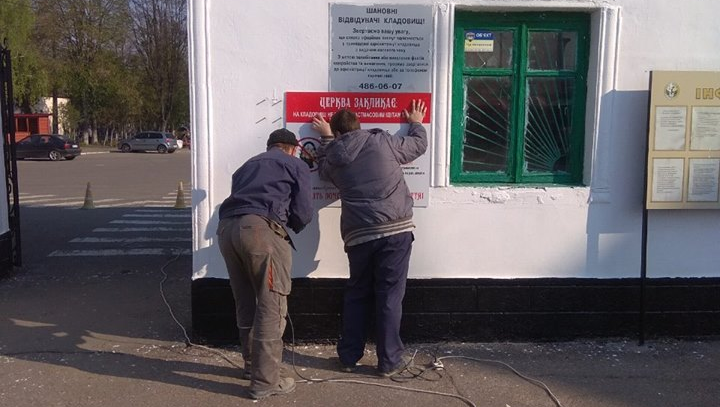 В дописі також прикріплено світлину, на якій комунальники монтують аналогічне прохання від церкви. Зазначають, що утилізація пластикового оздоблення могил шкодить довкіллю.