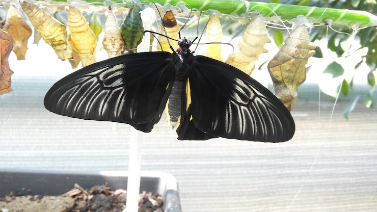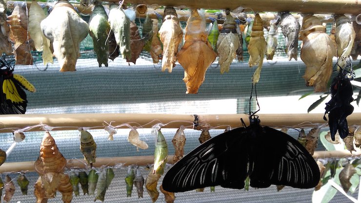 Відвідувачі виставки зможуть побачити на власні очі цикли життя комах: харчування, парування, відкладання яєць та народження нових метеликів.