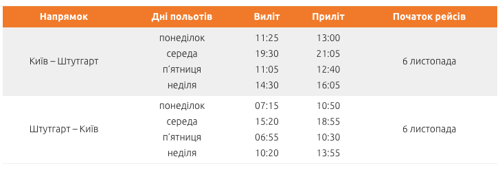 З шостого листопада лоукост-авіакопанія Lauda відкриває рейс Київ–Штутгарт. Вартість квитків в обидві сторони становить 39,9 євро, в одну – 19,9 євро. Про це повідомляє Lowcostavia.