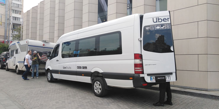 Компанія Uber запустила сервіс виклику мікроавтобусів Shuttle 14 травня. На офіційну презентацію у Києві прийшли також мер міста Віталій Кличко та міністр інфраструктури Володимир Омелян.