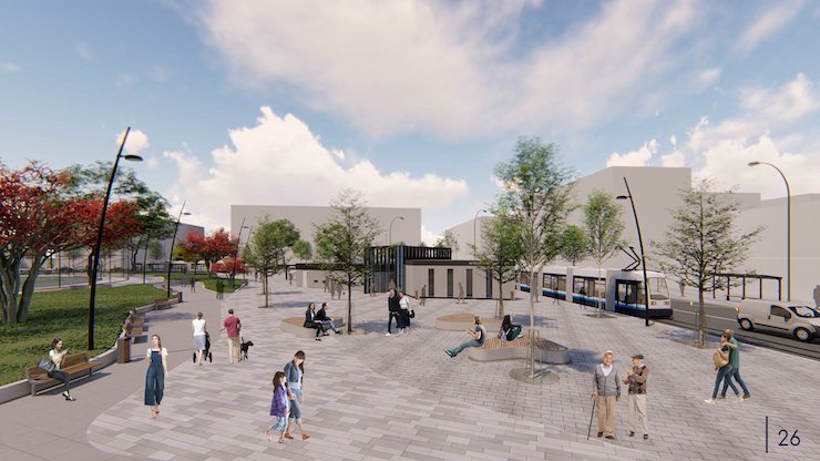 Третє місце посіла пропозиція компанії «Ю Сі Джи». Автори пропонують відновити лінію трамваю для активізації та рекреації простору.