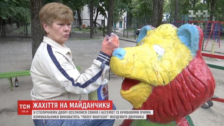 Після розголосу в соцмережах комунальники перефарбували тварин на дитячому майданчику на вулиці Волинській, 2 у Солом’янському районі, повідомляє ТСН.