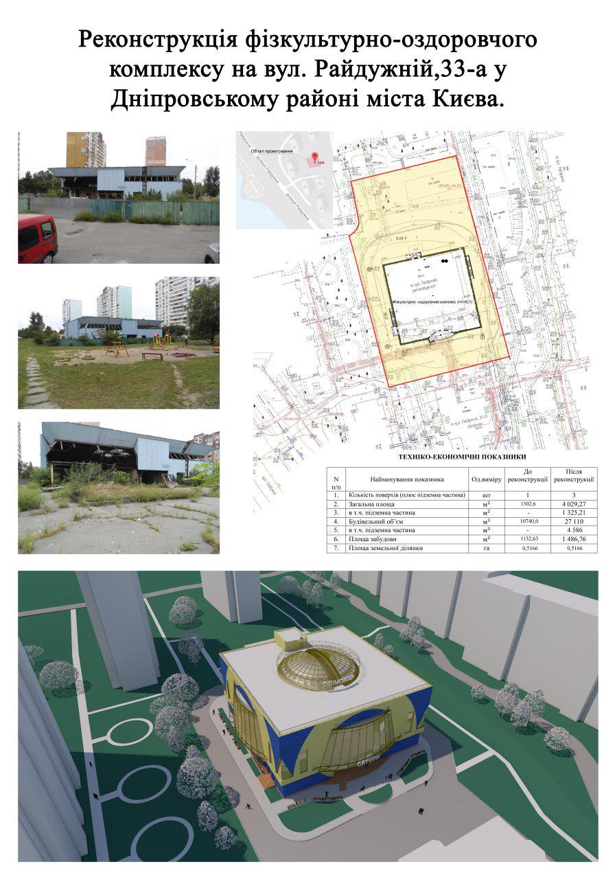 На вулиці Райдужній, 33а, почалася реконструкція закинутого спортивного комплексу. Про це повідомляє КМДА.