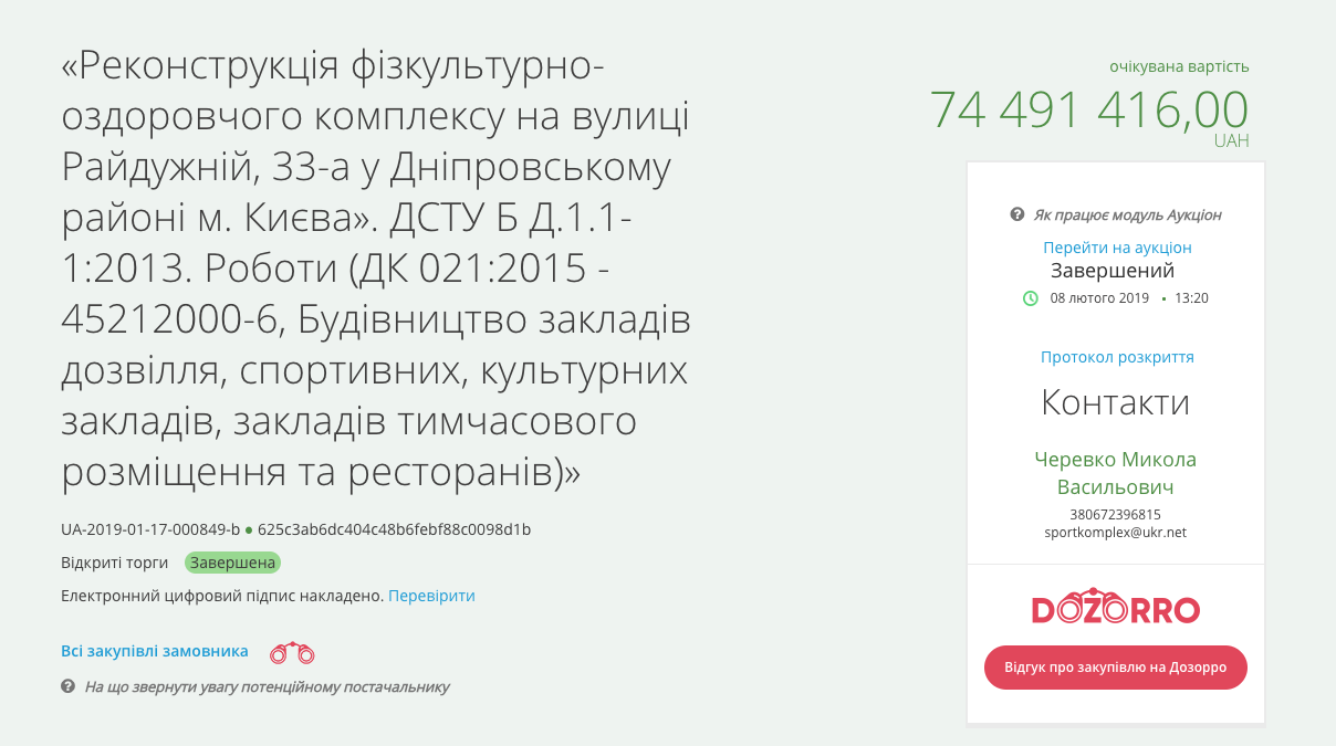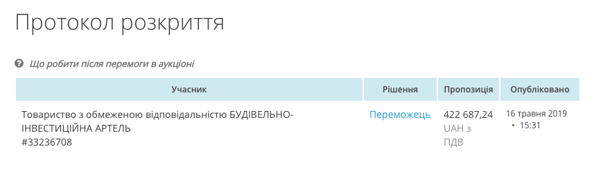 Проект реконструкції ФОК оприлюднювали ще у 2017 році. Незавершену частину проектно-кошторисної документації до 31 грудня виконує виконує ТОВ «Будівельно-інвестиційна артель» за 423 тисячі гривень. Це єдине підприємство, що взяло участь в аукціоні.