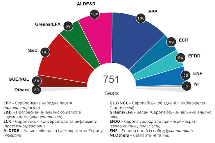 До Європарламенту найбільше місць отримують право- і лівоцентристи – Європейська народна партія та Прогресивний альянс соціалістів і демократів. Такими є попередні результати виборів, які проходили 23-26 травня у 28 країнах Євросоюзу.