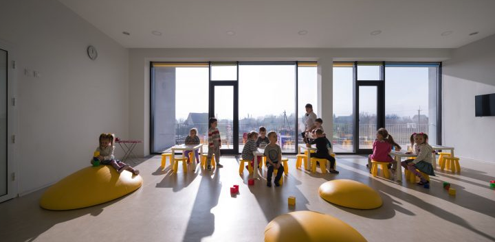 В жовтні у Дніпропетровській області відкрився дитячий садок, збудований за принципами енергоефективності. Проект будівлі належить архітекторам Valentirov&Partners Олексію Валентірову та Катерині Криськовій. Видання dniprograd.org повідомляє, що він отримав премію всеукраїнського конкурсу Artspace, у складі журі якого є видатні міжнародні проектувальники.