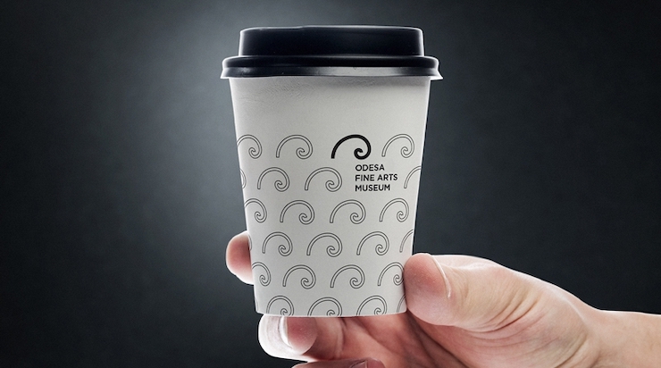 Новий логотип Одеського художнього музею, нанесений на стаканчик. Зображення: прес-служба Havas Ukraine