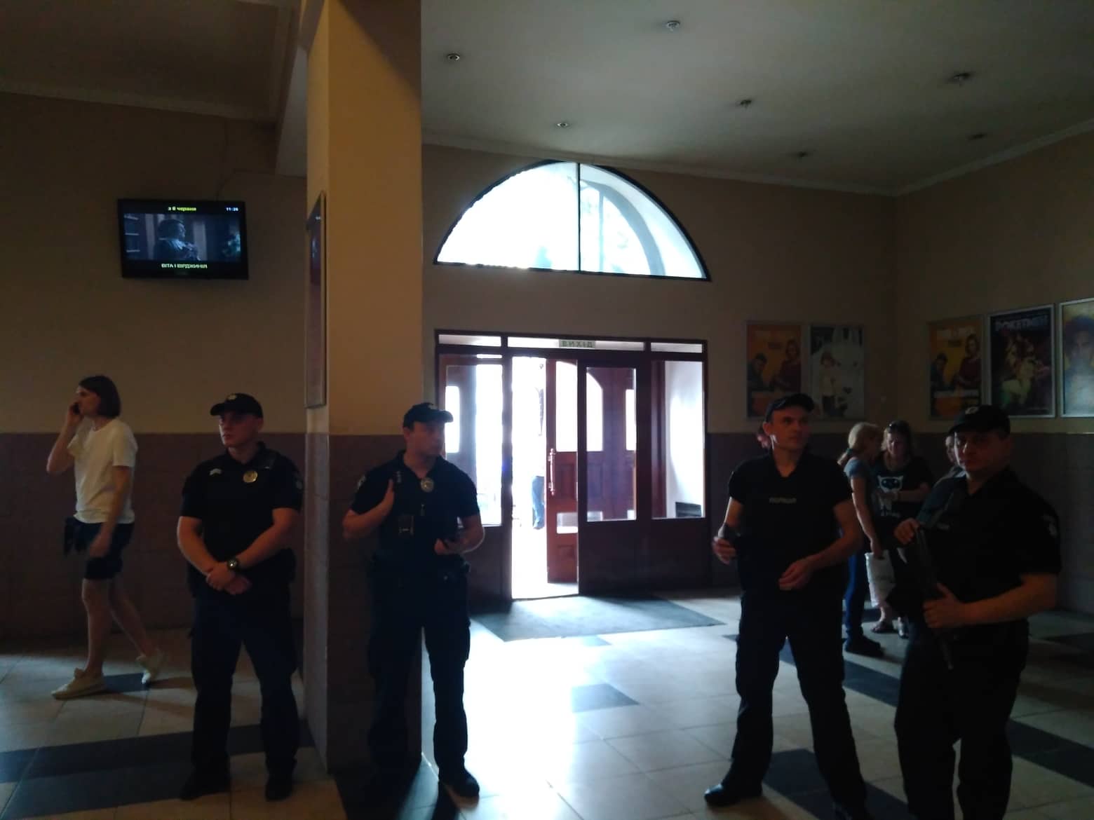 Адміністраторка кінотеатру Тетяна Січкаренко повідомила, що з 11 ранку прохід на другий поверх перекрили близько шести чоловіків у камуфляжній формі (таку форму носять працівники Муніципальної варти). Прибула поліція. Про застосування сили до людей всередині приміщення не повідомляється.
