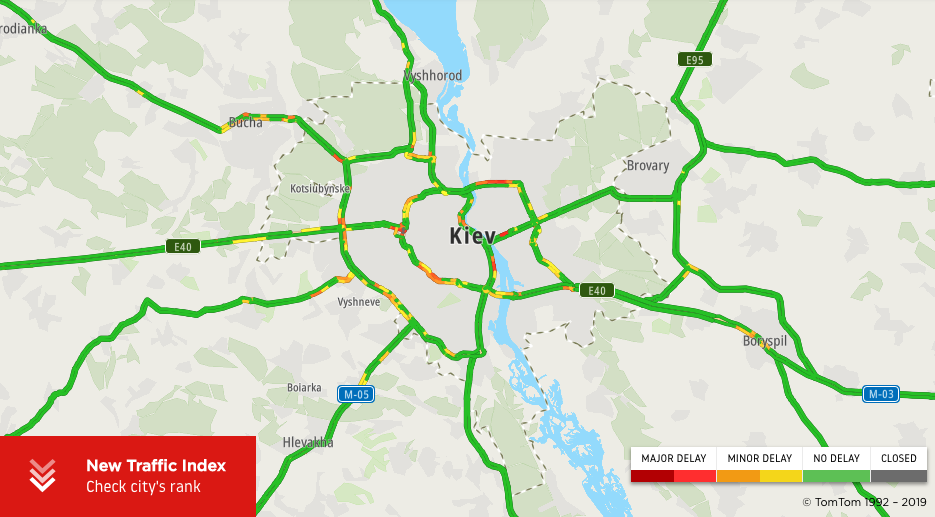 Так, у Києві перевантаженість становить 46%. Це означає, що водії витрачають на 46% більше часу, щоб їздити київськими дорогами. Найлегшим днем для руху на дорозі в 2018 році стало восьме квітня – тоді показник завантаженості на дорогах становив 6%. Відповідно, найважчим днем було перше березня з рівнем завантаженості у 107%.