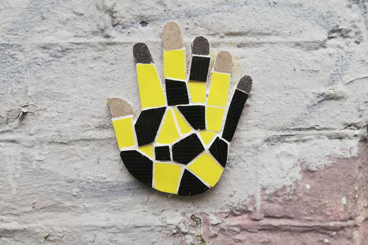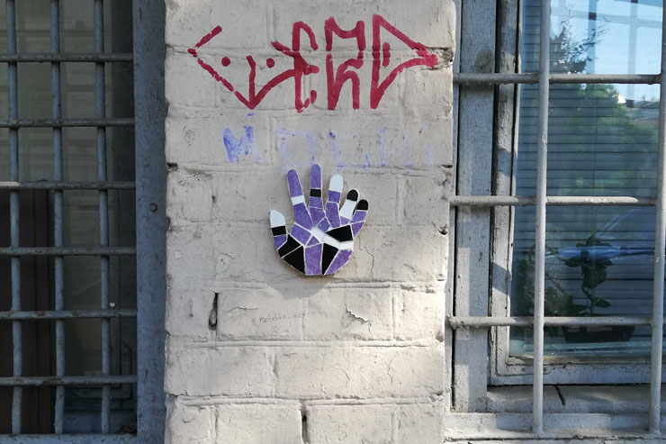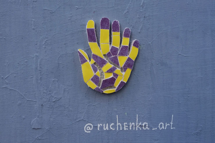 Фото мозаїки у формі долоні невідомого вуличного художника почали з’являтися в Instagram. «Мене звуть Рученька і я дуже боюся щезнути», – написано під першим постом на сторінці проекту.