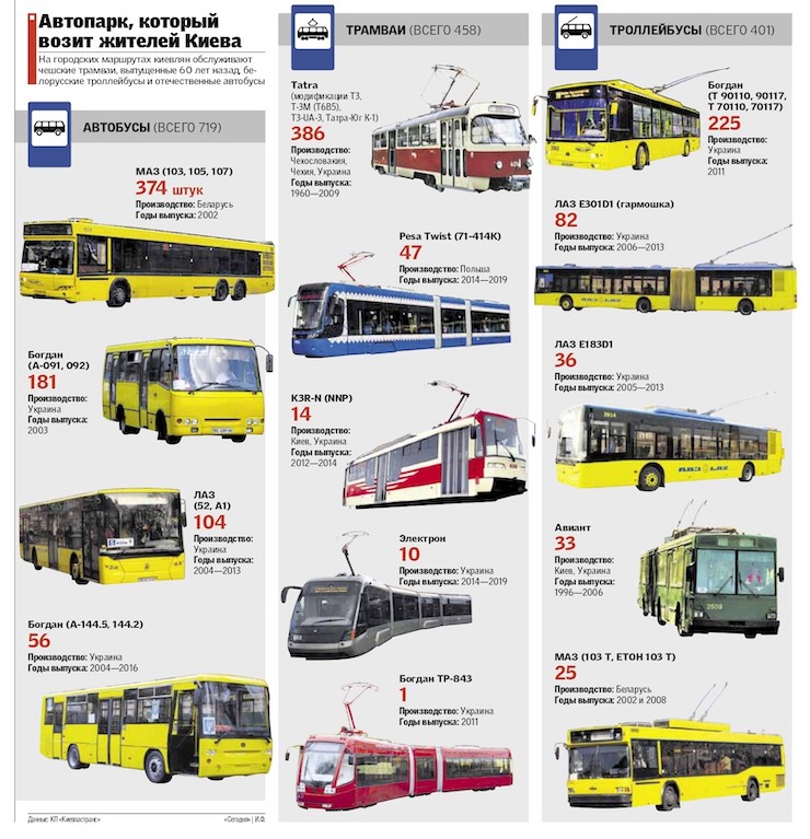 У 2016-2018 роках для Київпастрансу придбали 47 польських трамваїв Pesa і 10 львівських «Електронів». Цьогоріч планують закупити 13 нових тролейбусів, а трамваї та автобуси поки не купуватимуть.