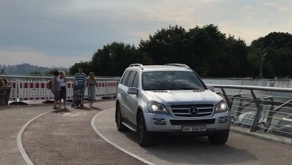 Сьогодні, 17 червня, на велопішохідний міст заїхав автомобіль марки Mercedes-Benz. Світлину поширив Діма Макагон.