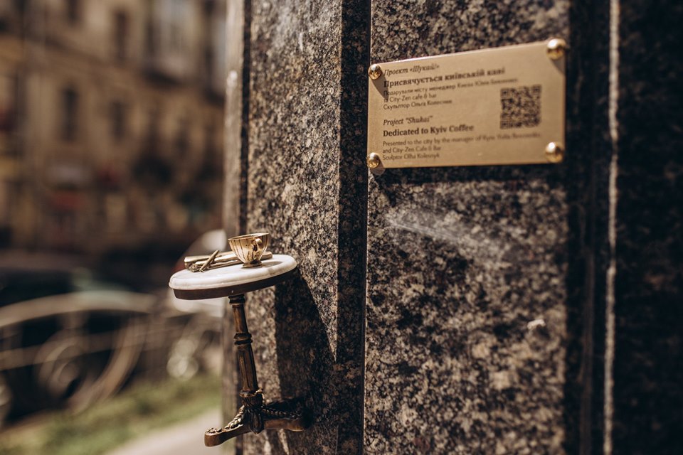 На колоні за адресою вулиця Велика Житомирська, 20, встановили сімнадцяту скульптуру мініатюрної серії «Шукай!». Виріб присвячено київській каві ХІХ століття, повідомила кураторка проекту Юлія Бевзенко.