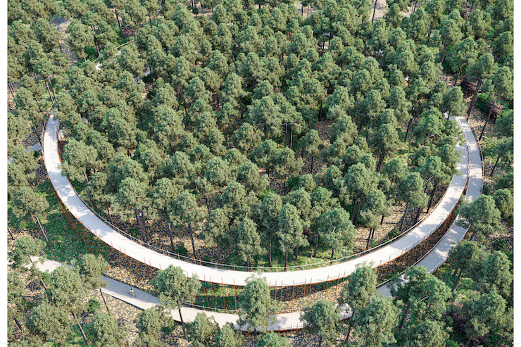 Кільцева велосипедная розв’язка у белгійській провінції Лімбург сполучає веломаршрути, які перетинають ліс. Маршрут піднято на 10 метрів над землею.