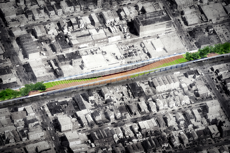 «Перевернутий» велопішохідний міст Квінсі, Нью-Йорк, США, спроектовано Nooyoon на місці покинутої залізниці. Він призначений сполучати громадські простори на нижчих рівніях із вищими.