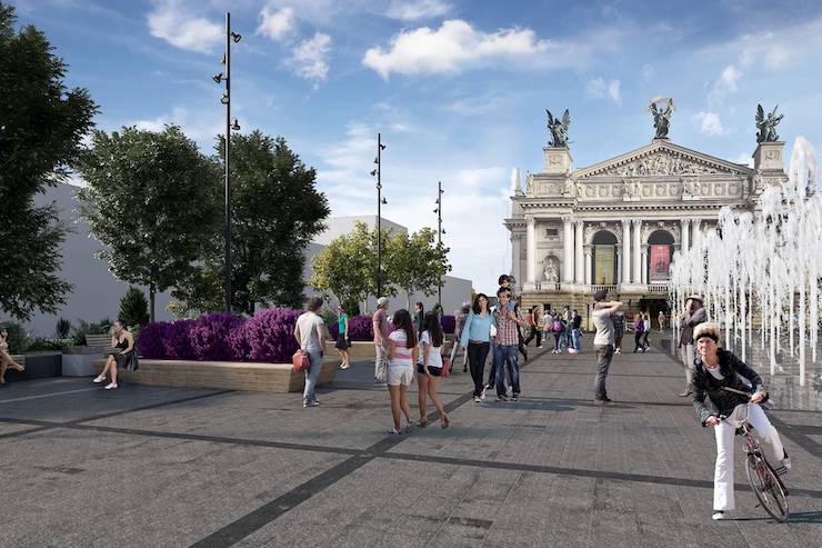 Архітектурна майстерня 33BY Івана Юнакова захистила проект реконструкції площі з фонтаном перед Львівською оперою.