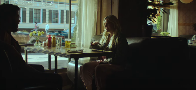 Так Туве Лу проходить через багато локацій по всьому світі, розмовляючи по мобільному, та повертається до чоловіка у заклад.