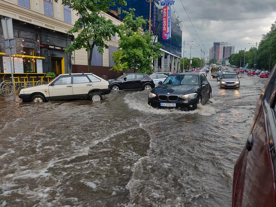 У соцмережах та мессенджер-спільнотах кияни діляться знімками зливи, яка пройшла 27 червня. Після шквалу в місті призупинився рух транспорту, деякі ділянки стали важкодоступними для пішоходів.