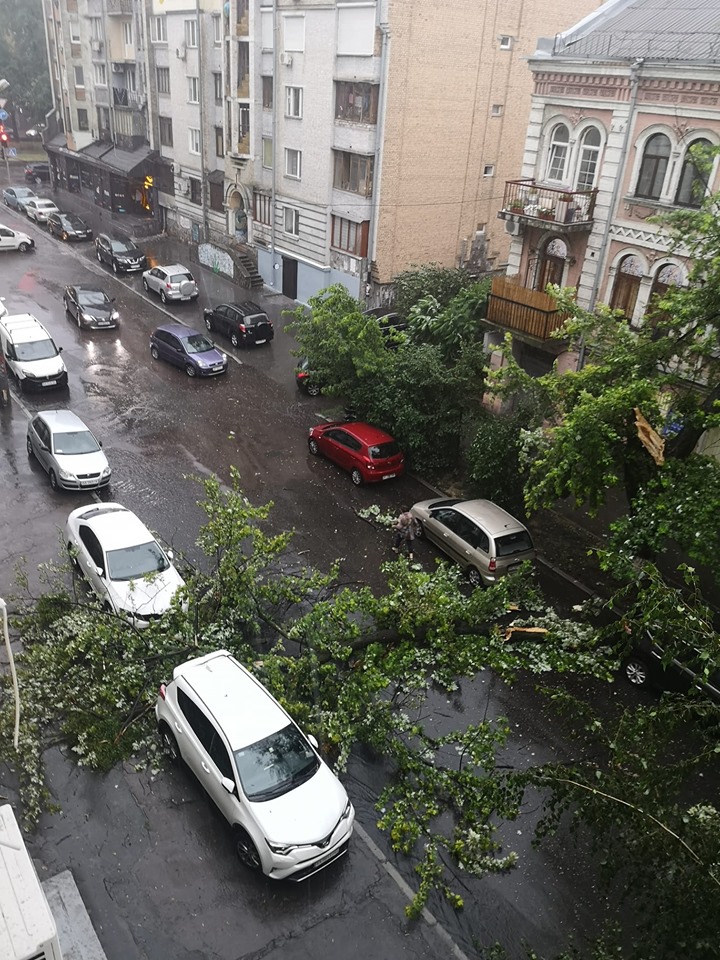 Шторм уже розпочався і повалив дерева на Подолі.