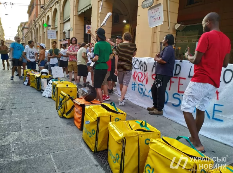 В італійському місті Болонья кур’єри Glovo вийшли з протестом під головний офіс компанії. Про це повідомляє кореспондент «Українських новин».