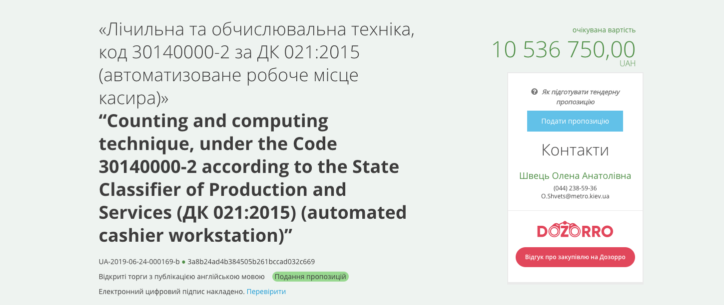 Мінімальний гарантійний термін для кас повинен становити 12 місяців. Сам тендер заплановано на 30 серпня.