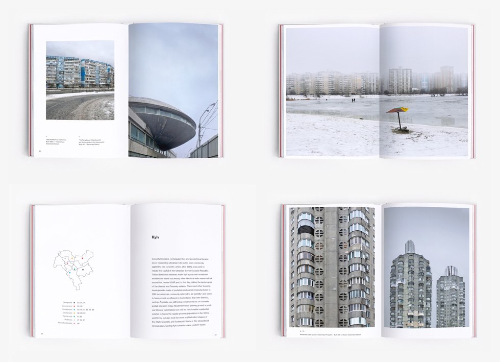«Це фотоподорож бетонними периферіями колишнього Радянського блоку, яка містить 100 фотографій з прикладами модерністської та бруталістської архітектури, розкиданої у Берліні, Варшаві, Будапешті, Києві та Санкт-Петербурзі. Увійшли об’єкти на кшталт будинків “на курячих ніжках”, радянських “літаючих тарілок” та башт у формі молота», – зазначається в описі книги.
